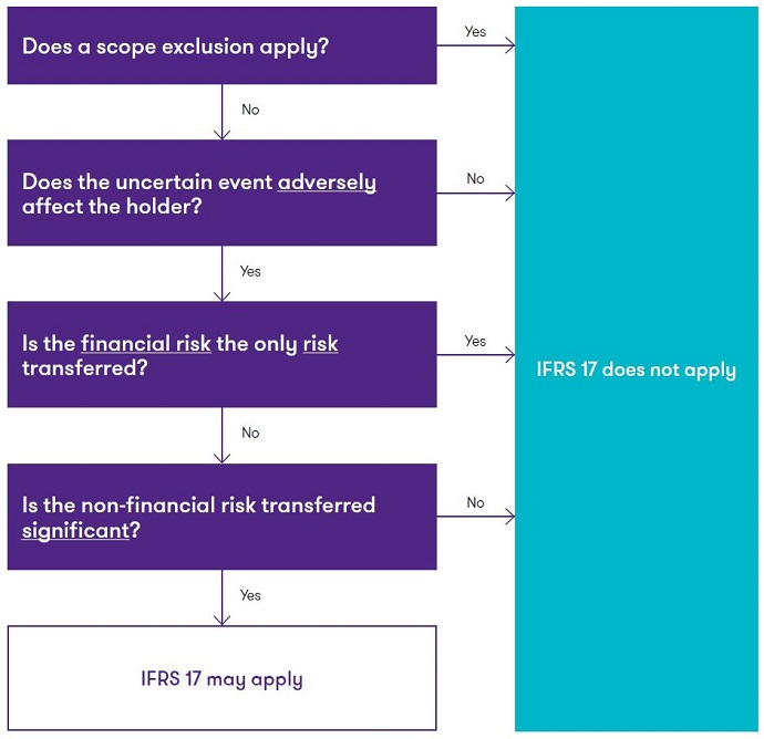 IFRS 17 defines an insurance contract in a similar way to IFRS 4 - A contract under which one party (the issuer) accepts significant insurance risk from another party (the policyholder) by agreeing to compensate the policyholder if a specified uncertain future event (the insured event) adversely affects the policyholder.